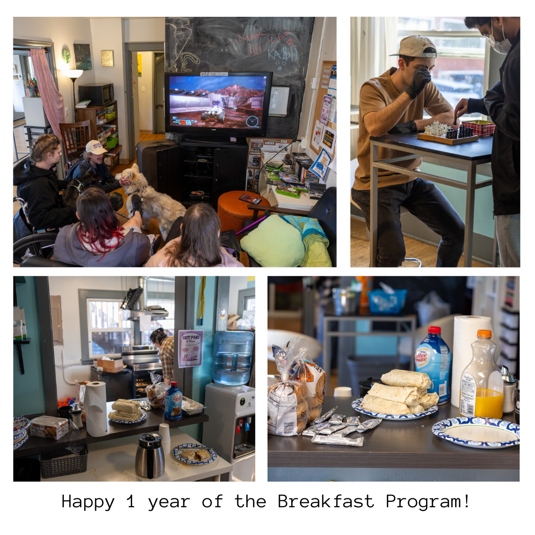 One year ago, with support from Teen Feed and UW’s Doorway Project, SYM kept the doors of UDYC open for the Breakfast Program. Amid changes in the neighborhood, including Youth Care consolidating their services in downtown Seattle, clients were unsure what was happening at UDYC. We saw between 3 and 10 clients in the first couple weeks. Eventually, by word of mouth, clients heard the news that this building was still open for their use in the mornings. They could still come to get coffee, a hot breakfast, cold weather items like gloves and handwarmers and chill inside with their peers. Since last October we have worked with over 20 volunteers and have served 352 unique individuals at the Breakfast Program.